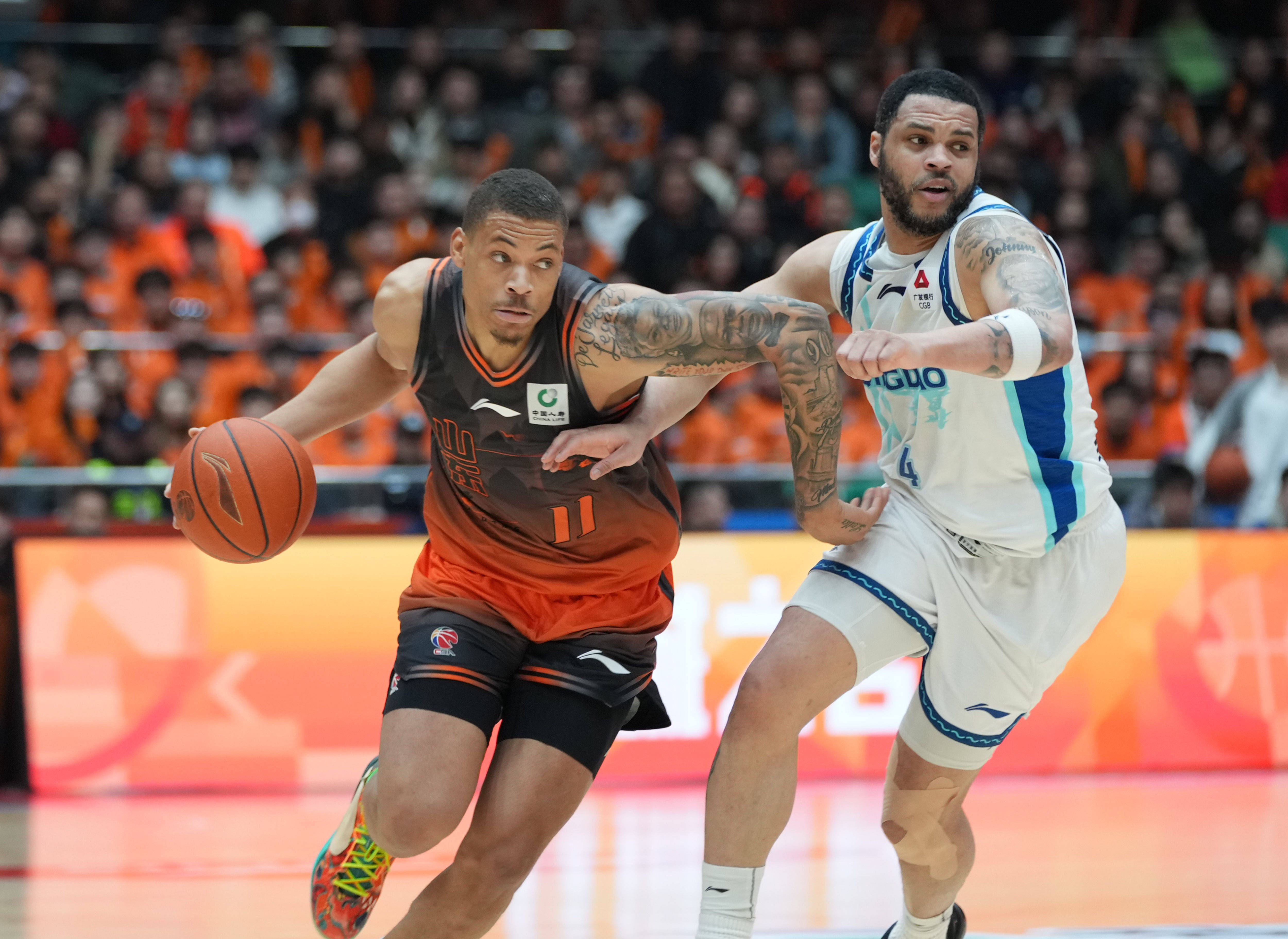 3月14日,山东队球员约翰逊(左)在比赛中突破。新华社记者 徐速绘 摄拥有冠军底蕴的辽宁队本赛季经历新老交替,战绩不佳,但凭借本周收获的两连胜,排名有所上升。浙江队、宁波队、山西队、广州队等中游球队之间的胜场差距极小,季后赛席位的竞争将相当激烈。