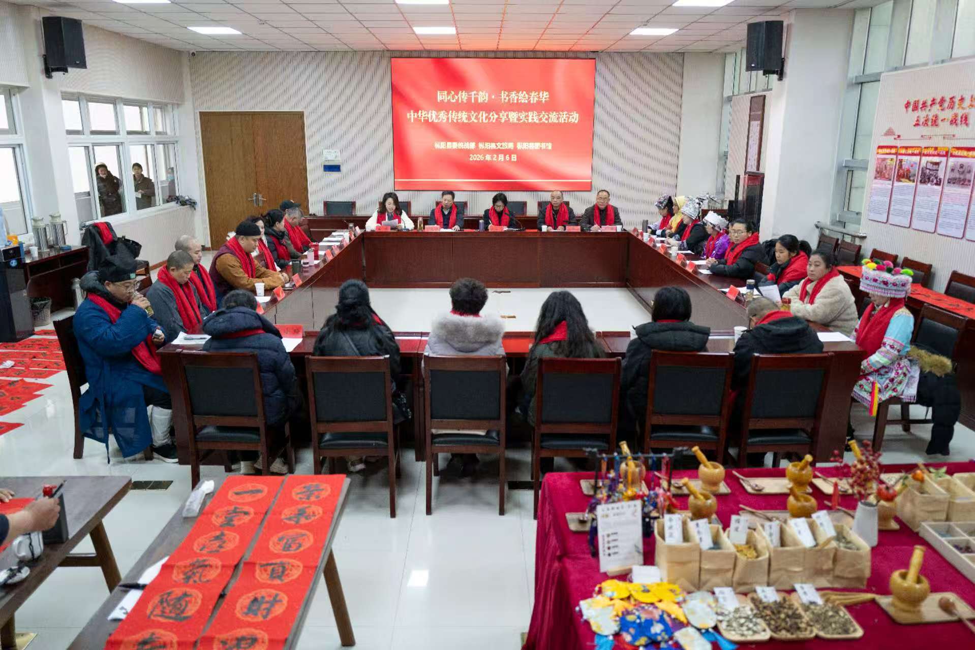 上午9时许,枞川同心苑内座无虚席。来自全县民族宗教界、港澳台界、新联会、知联会的40余名统战成员齐聚一堂。会场桌上,一张张春联纸静静铺开,毛笔、香囊布料、中药材等材料整齐摆放,空气中隐隐浮动着书香与中药材清香交织的独特气息。