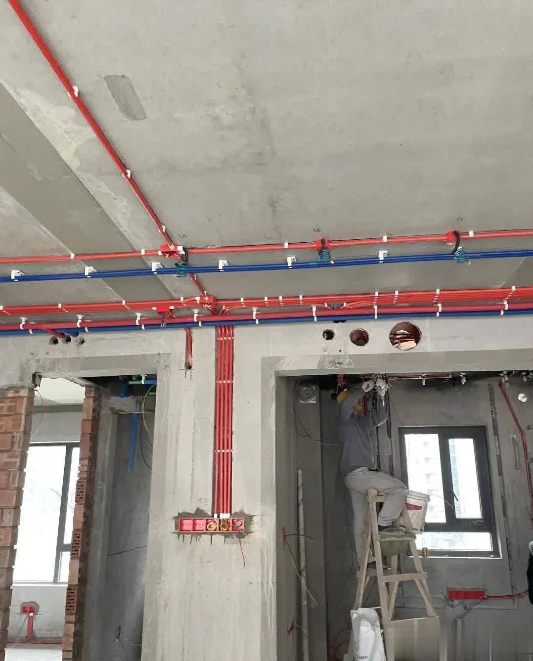 反而水电走地更划算:水管埋在地下,被水泥沙子保护着,能隔绝潮气、磕碰,寿命更长。建议水电施工完,先用水泥沙浆把管线埋好,再进行下一步施工,避免后期上料、干活时把管子碰坏,既省钱又放心。