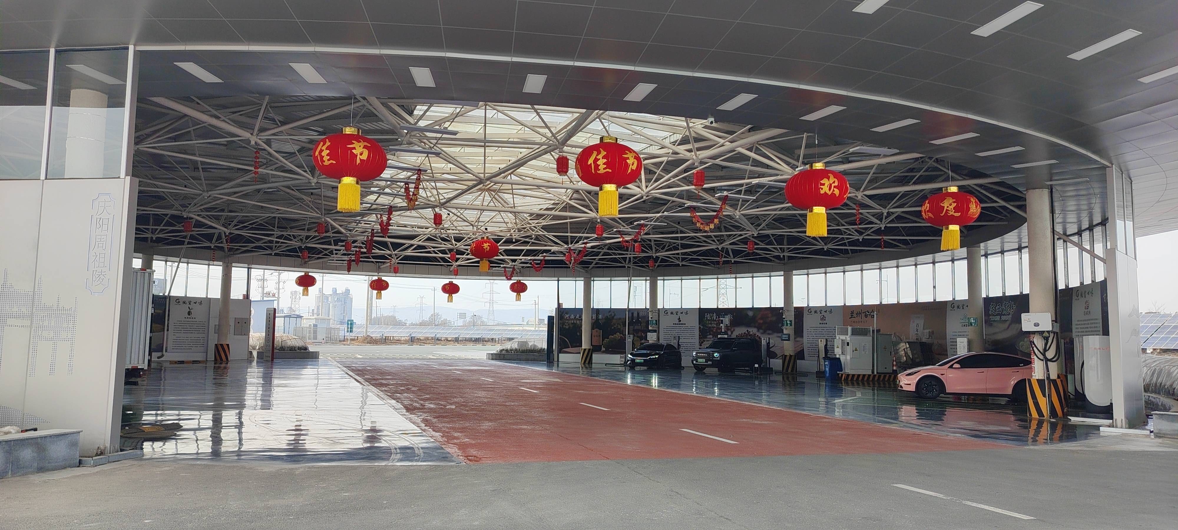 接驾嘴服务区是甘肃首个近零碳服务区,今年也是这个服务区“光储充超级充电站”迎来的首次春运。
