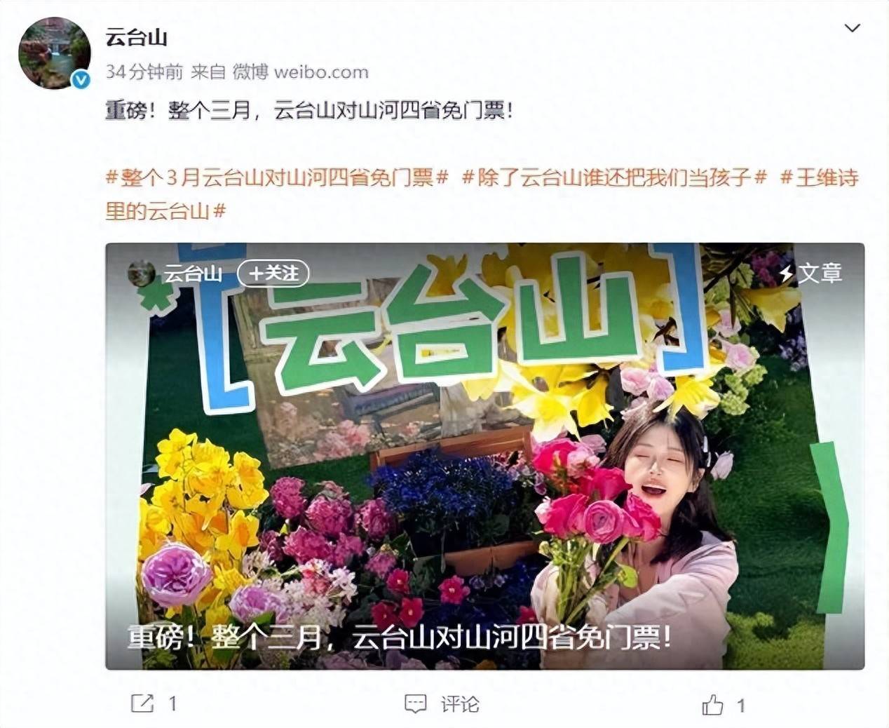 2月25日,河南焦作云台山景区宣布3月对河南、山西、山东、河北4个省份免门票。
