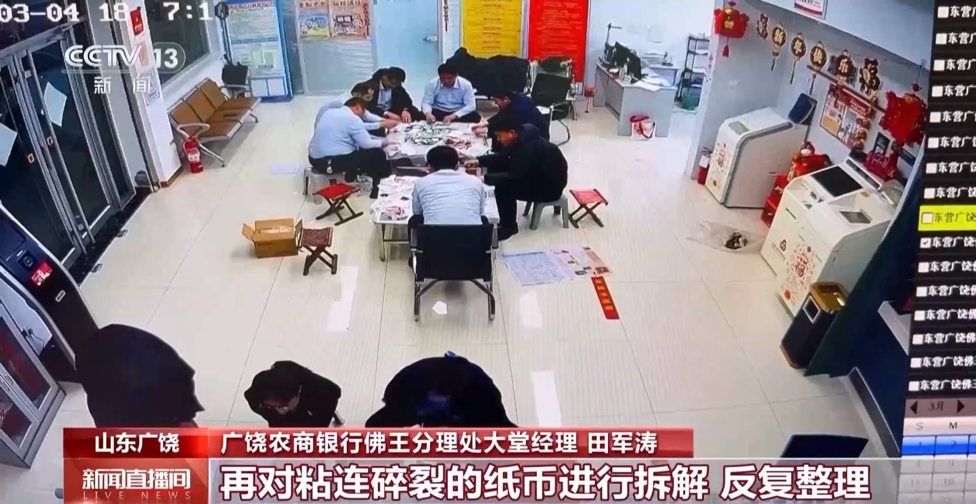广饶农商银行佛王分理处大堂经理 田军涛:我们严格遵循《中国人民银行残缺污损人民币兑换办法》,运用多光谱检测、核验票面残损面积、精准测算等专业手段,对每一张残损币进行细致的甄别,然后将潮湿的钱币逐一平铺、分离、晾干,再对粘连碎裂的纸币进行拆解,反复整理,精准核验票面信息与完整度,核算可兑换比例,确保兑换工作的精准无误。